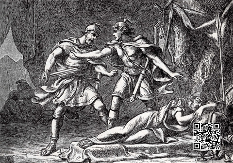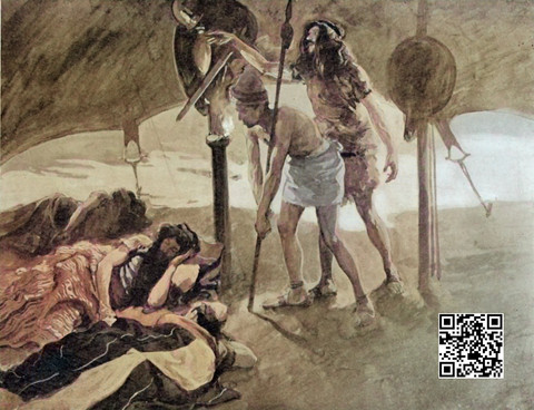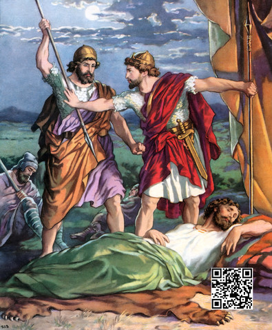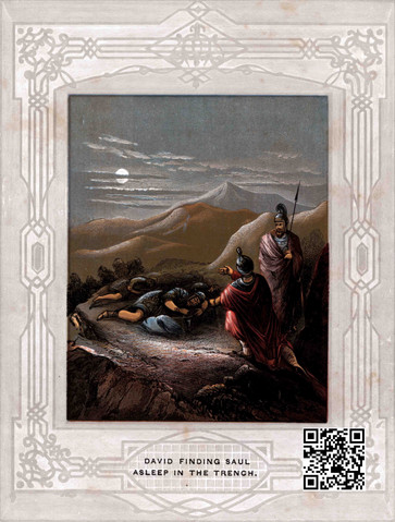 Now David and his men were sitting in the innermost parts of the cave. And the men of David said to him, “Here is the day of which the Lord said Then David arose and stealthily cut off a corner of Saul's robe. And afterward David's heart struck him, because he had cut off a corner of Saul's robe to you, ‘Behold, I will give your enemy into your hand, and you shall do to him as it shall seem good to you.’